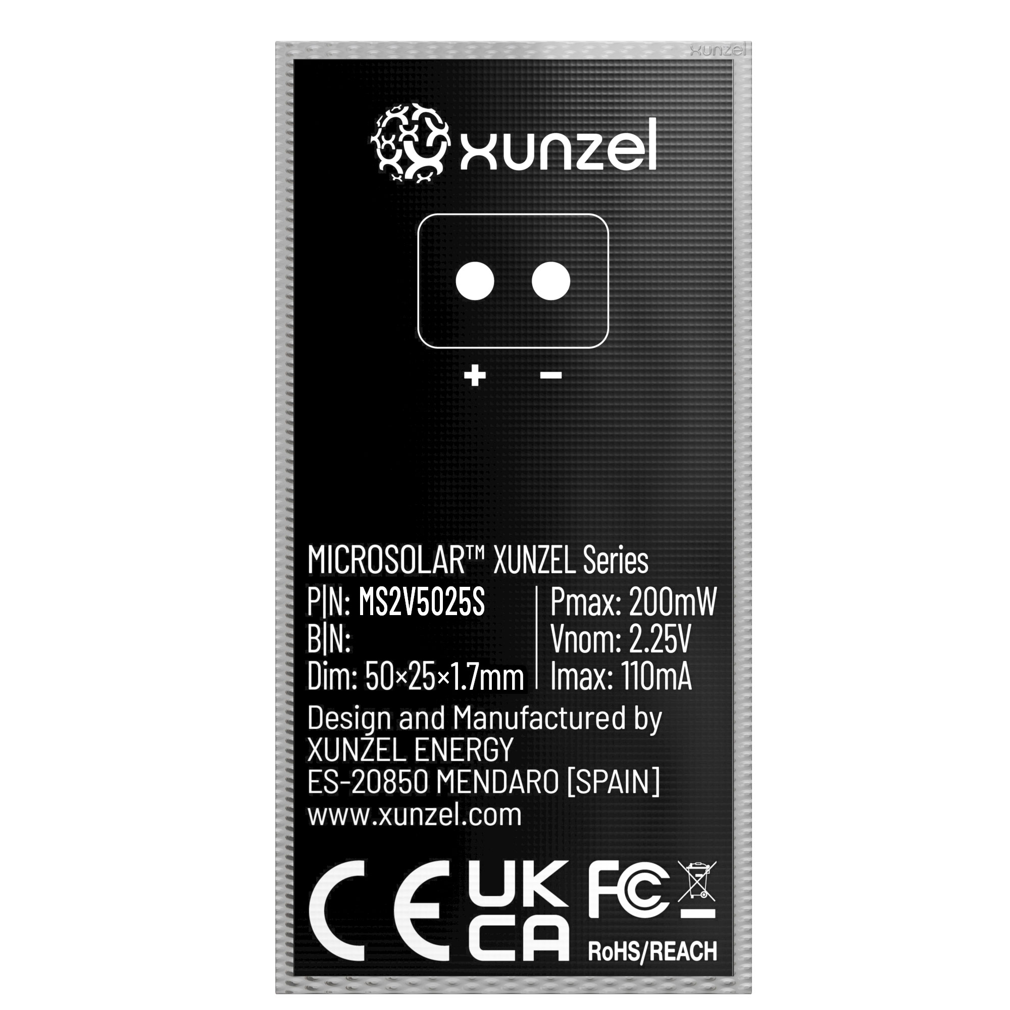 Photovoltaic solar panel MICROSOLAR for industrial use manufactured with high-efficiency cells and spectral response (optimized for low radiation).
