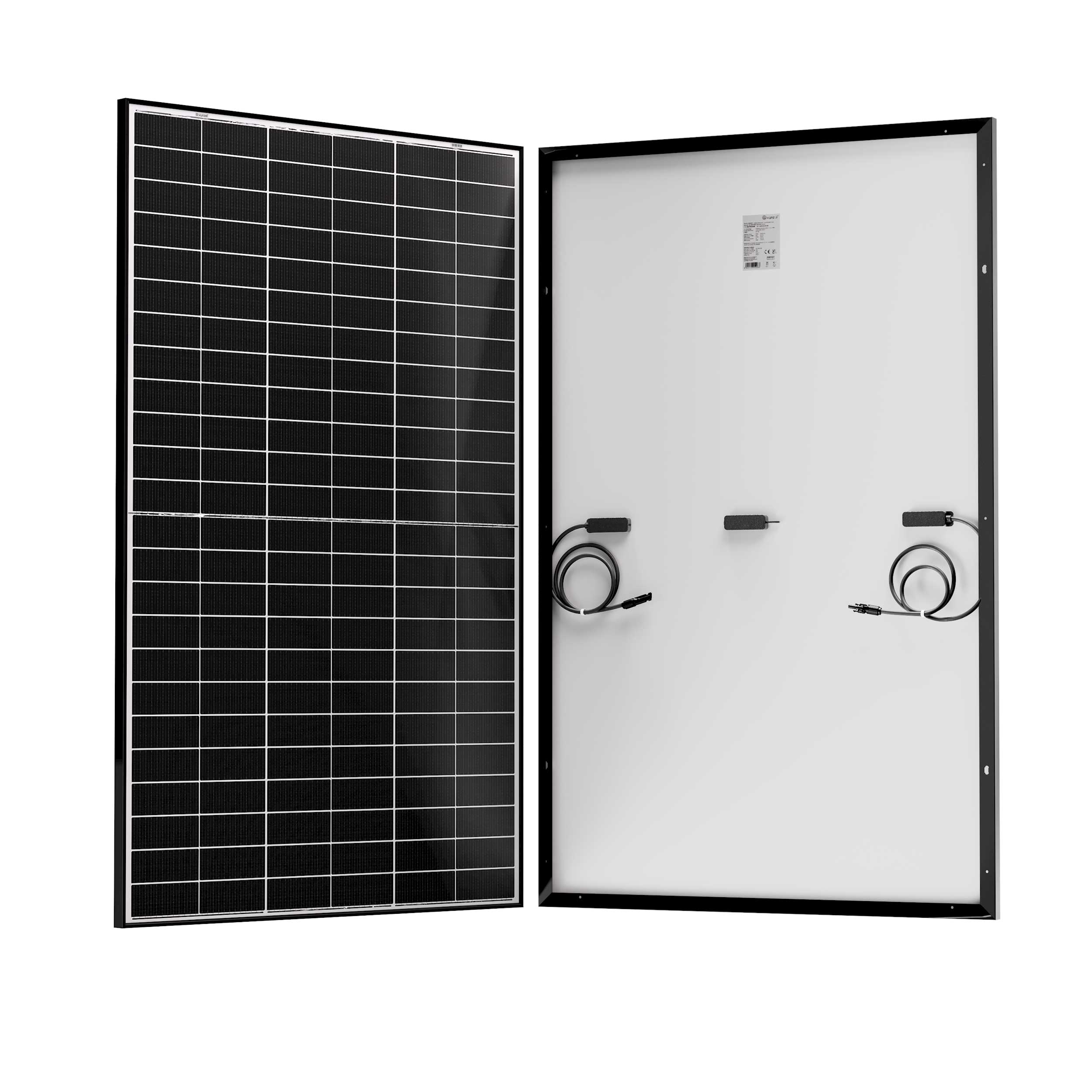 Cellules solaires SOLARPOWER XUNZEL à très haut rendement (>23,6 %). Cadre en aluminium anodisé et formé à froid, à très haute résistance mécanique et résistant à la corrosion. Verre solaire spécial et verre frontal trempé, résistant à la grêle et offrant une sécurité maximale.