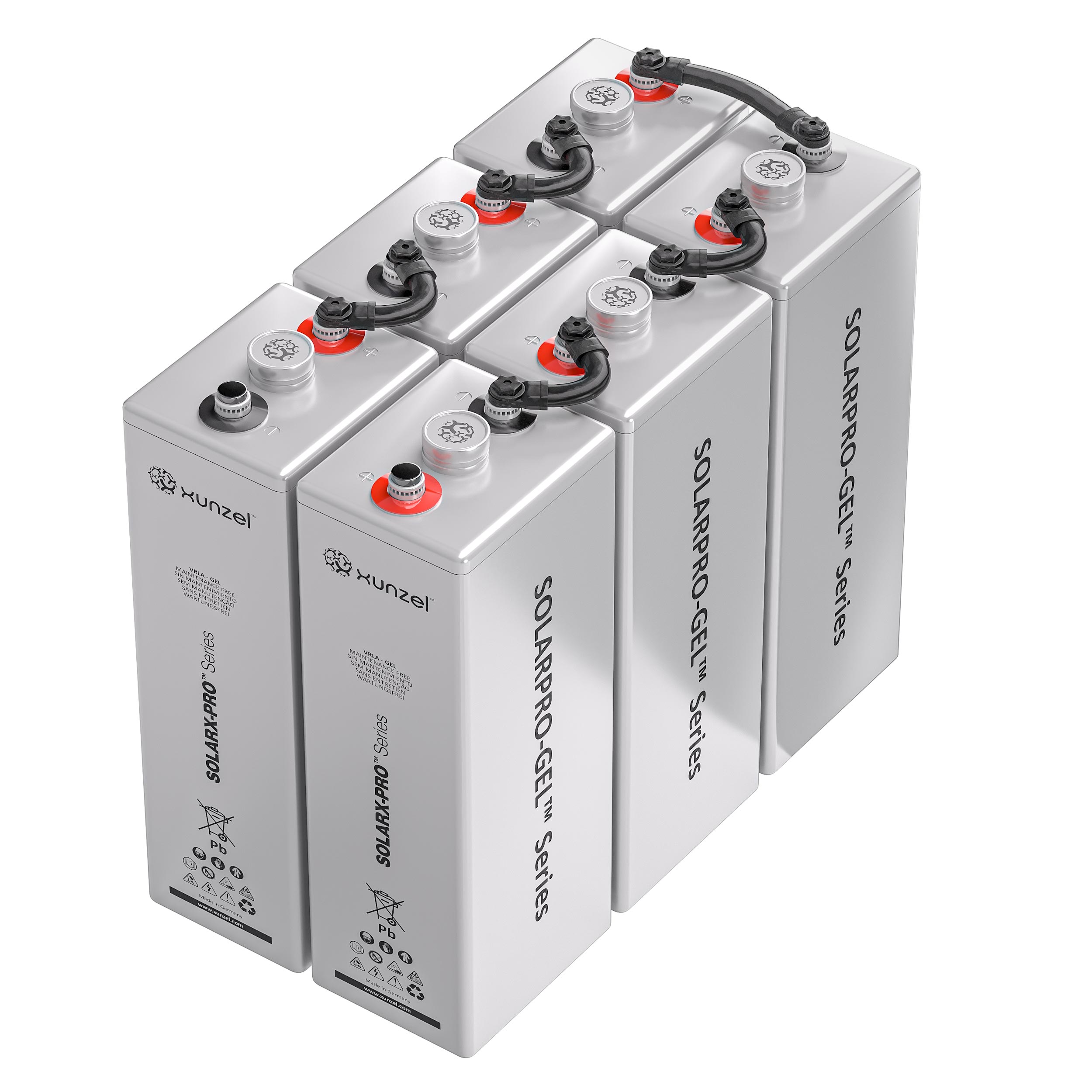 SOLARX-PRO-795B6. Banc de batterie solaire complet 12V, avec câbles et bornes inclus.